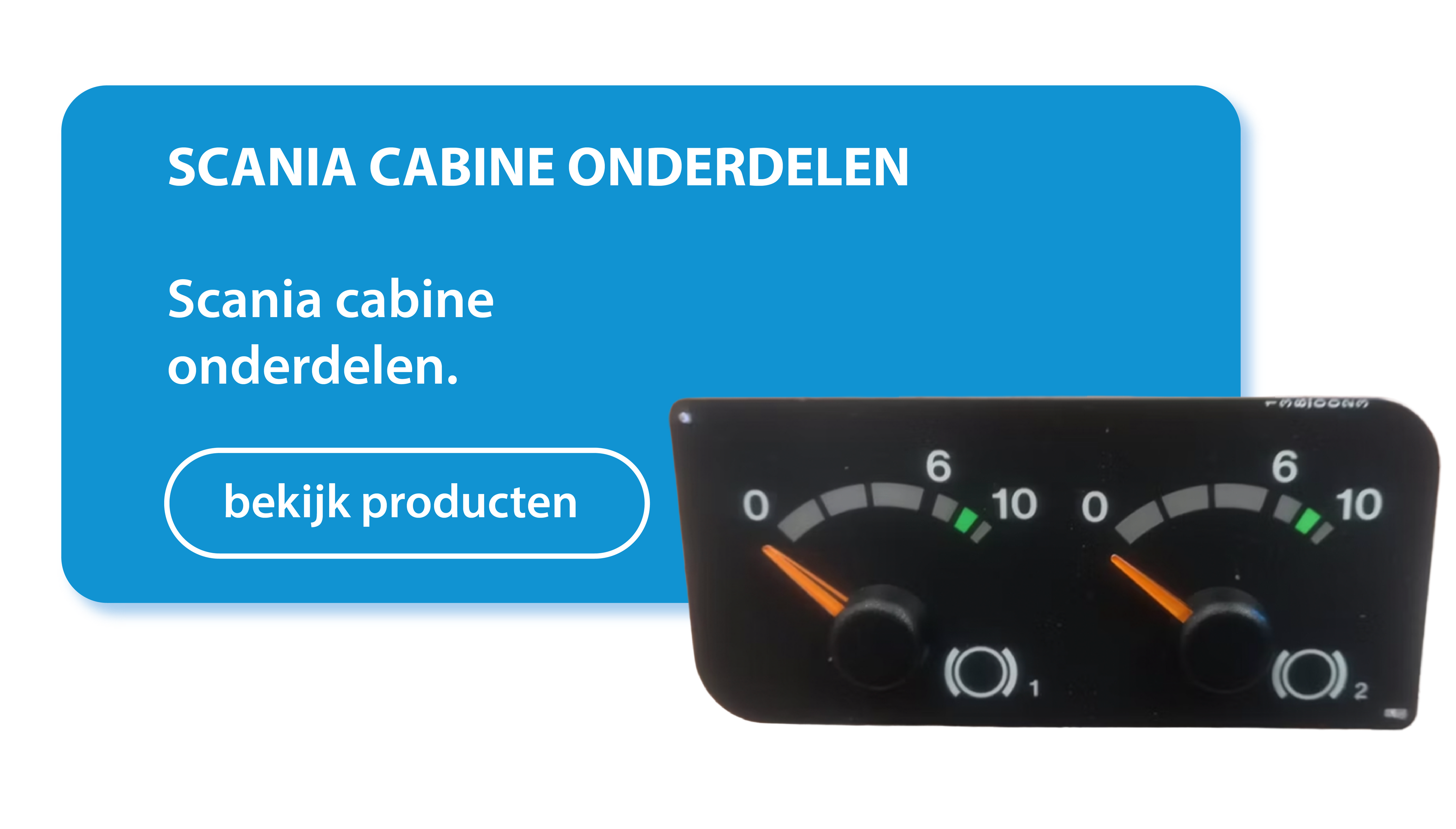 A scania truck with a dark background so white text comes out clearly. We are selling scania truck parts, so that should be visible as well